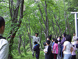 社会貢献Society ホーム>会社概要>社会貢献 野外環境教室 環境事業本部では、たんぼの学校、水辺の学校をはじめとする各種の自然観察会、環境教室などに講師を派遣しています。講師は動植物や水質の環境調査を行う技術者の中から、各種の環境教育講習と救命講習の修了者が担当しています。また、室内外における独自の環境教育プログラムの開発も行っています。 学校の裏山に設置したコウモリのねぐら箱の観察
