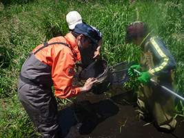 社では、ネイチャーポジティブの実現に向けた30by30目標(※)の達成にも貢献するため、①対象地の動植物の状況把握、②河川環境と動植物との関係の評価、③インパクト-レスポンス分析、④河川水位や地下水位の解析に基づく植生予測、⑤将来環境の予測評価、⑥河川環境の定量目標の設定、⑦モニタリングとそれに基づく管理手法の検討等を通して、『河川の蛇行復元(釧路湿原)』、『湿原環境再生(釧路湿原や夕張川幌向地区等)』、『湿原・礫河原の再生、魚類の移動連続性の確保・回復(十勝川水系)』及び『旧川・湖沼の再生(石狩川下流)』等の自然再生に係る調査・検討・設計に取り組んでいます。