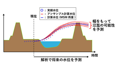 洪水予測、洪水氾濫予測、洪水ハザードマップ、水害リスク評価、基準水位設定、津波河川遡上予測、水害リスクマップ