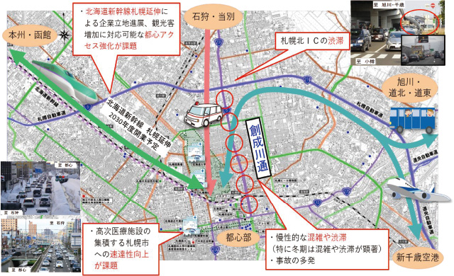 ⾼規格幹線道路と都⼼アクセス道路、交通拠点が⼀体となり、速い交通と遅い交通の機能分担を⾏うことで、交通⼿段の相互連携を促進や街の賑わいの創出を⽬指して⻑期的な視点にたった整備計画を立案しています。また、総合的なネットワークとして機能するための計画⽴案、計画評価、地域連携、合意形成等に配慮した多⾓的な整備計画の提案を⾏っています。