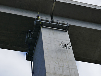 ※富士通株式会社と開発した二輪型マルチコプタ(NETIS:QS-190002-VR)を導入し、点検支援技術として採用しています。