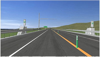 当社では、綿密な現地調査や3次元VR(Virtual Reality)等の先端技術の活用により、道路利用者の視線に立った道路設備配置や、最適なCCTVカメラ等の配置など、道路構造や交通状況に応じた最適な計画・設計を実施します。