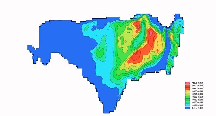 周辺河川から栄養塩や微細土砂の流入がある湖沼等において、境界条件を踏まえた土砂堆積に関する状態診断モデルを構築し、これらの解析結果より湖内土砂の滞留拡散状況や堆積要因を明らかにするシミュレーションです。